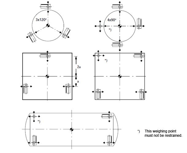 동적 하중 계량 모듈 4개를 사용하는 설치 방식에서는, 일반적으로 2개의 계량 모듈은 3면을 제한하고, 나머지 2개의 계량 모듈은 양 끝만 제한한다.