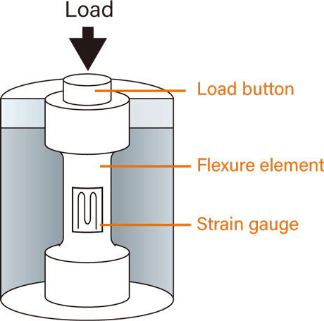 측정 시, 중력(gravity)이 탄성체(elastic body)에 작용하여 변형을 발생시키고, 이 변형(정(strain) 또는 부(strain))은 탄성체에 부착된 **스트레인 게이지(strain gauge)**에 의해 전기 신호로 변환됩니다.