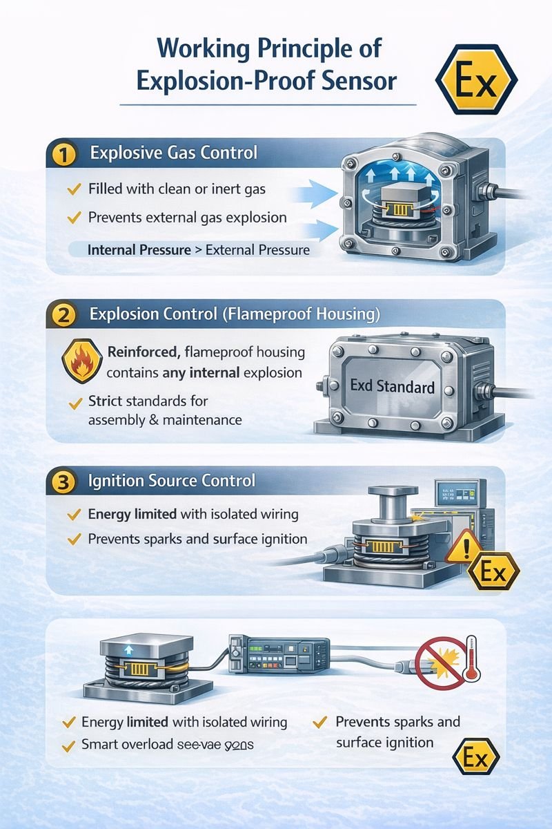 가연성 및 폭발성 환경에서는 폭발 방지 센서의 사용이 우선시됩니다. 폭발을 방지하기 위해 일반적으로 폭발 방지 요구 사항이 있는 제품을 선택합니다. 센서의 폭발 방지 방법은 주로 폭발성 가스 제어, 폭발 제어 및 점화원 제어로 나뉩니다. 폭발 방지 센서의 작동 원리를 간단히 소개하면 다음과 같습니다.