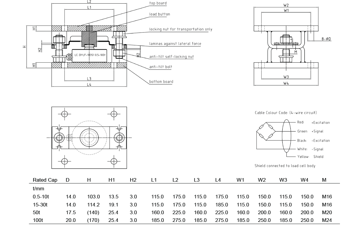 2) The sum of errors due to Temperature Effect on Output comply with the requirements of OIML R60 and NIST +B44