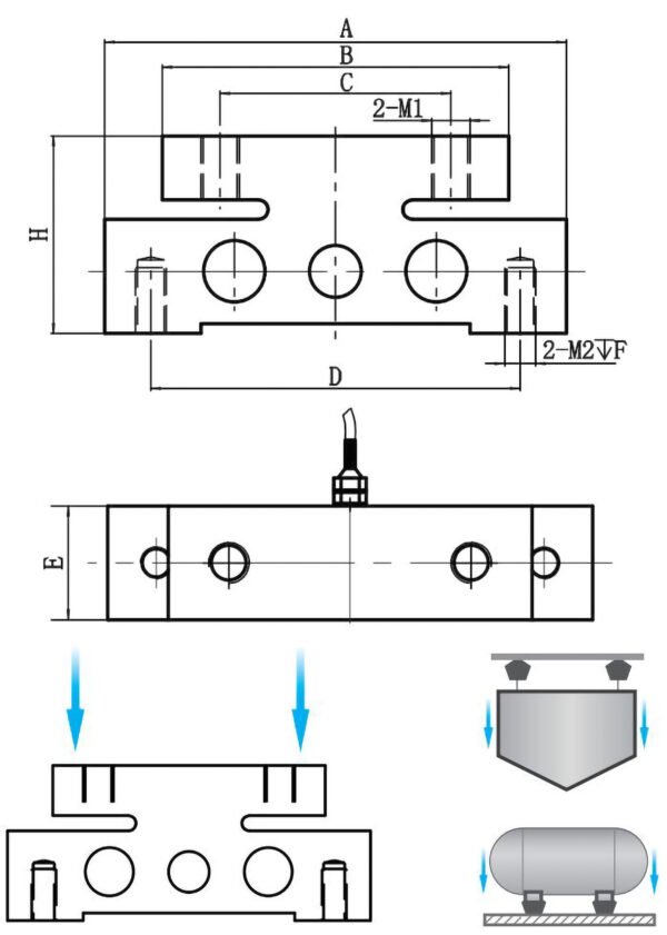 | Capacity(mm) | A | B | C | D | E | H | M1 | M2 | F |