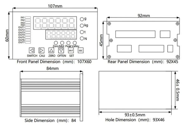 | Display | – | Dual-row 6-digit LED display |