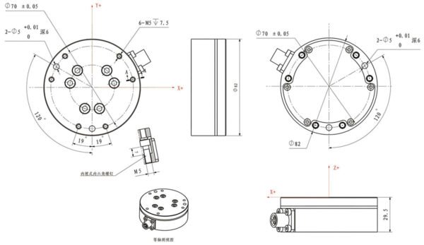 | Product Name | Six Axis Force Sensor | Capacity | Fx,Fy=400N,Fz=500N; Mx,My,Mz=12Nm |