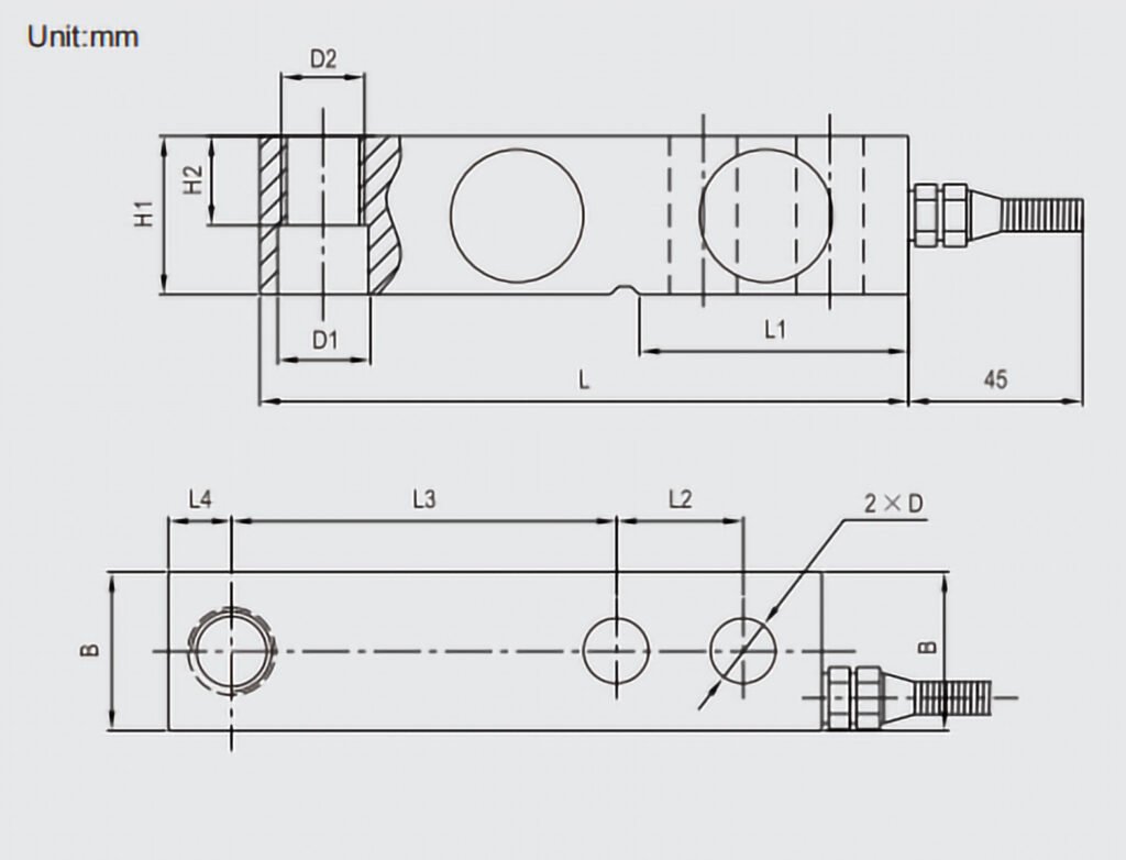| Capacity(mm) | L | L1 | L2 | L3 | L4 | B | H1 | D | D1 | D2 |