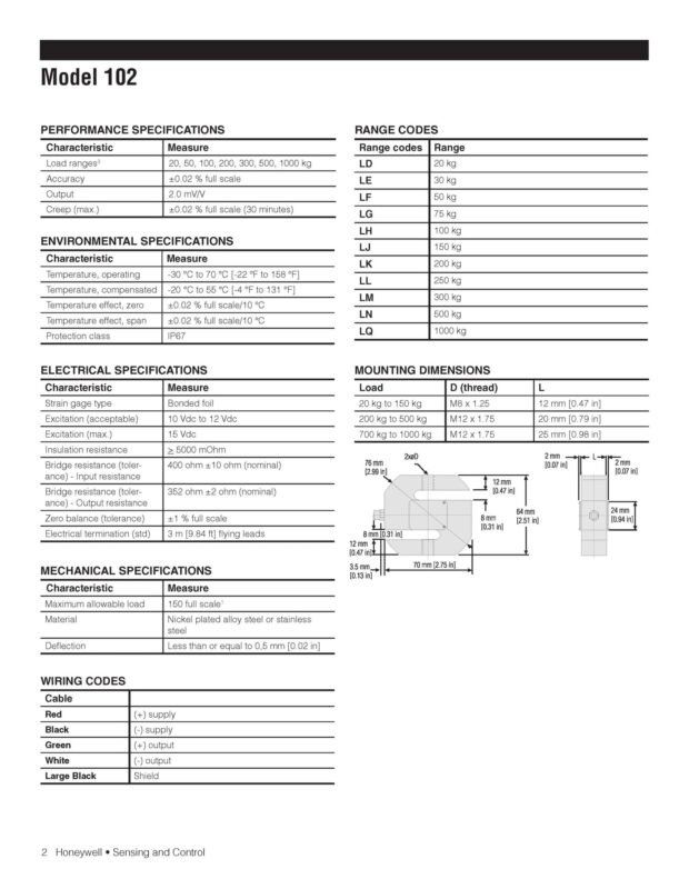 Honeywell Model 102 S-Type Load Cell