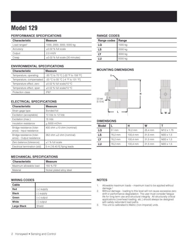 Honeywell Model 129 S-Type Load Cell