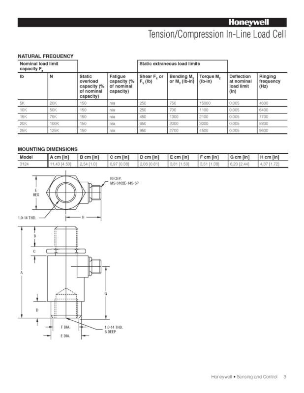 Honeywell Model 3632 Tension/Compression In-Line Load Cell