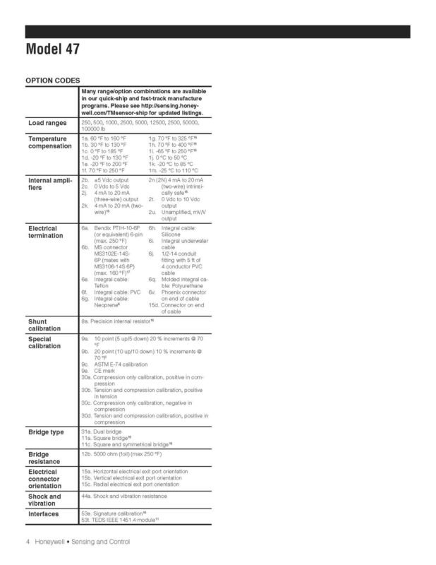 Honeywell Model 47 Fatigue Rated Ultra Precision Universal Load Cell