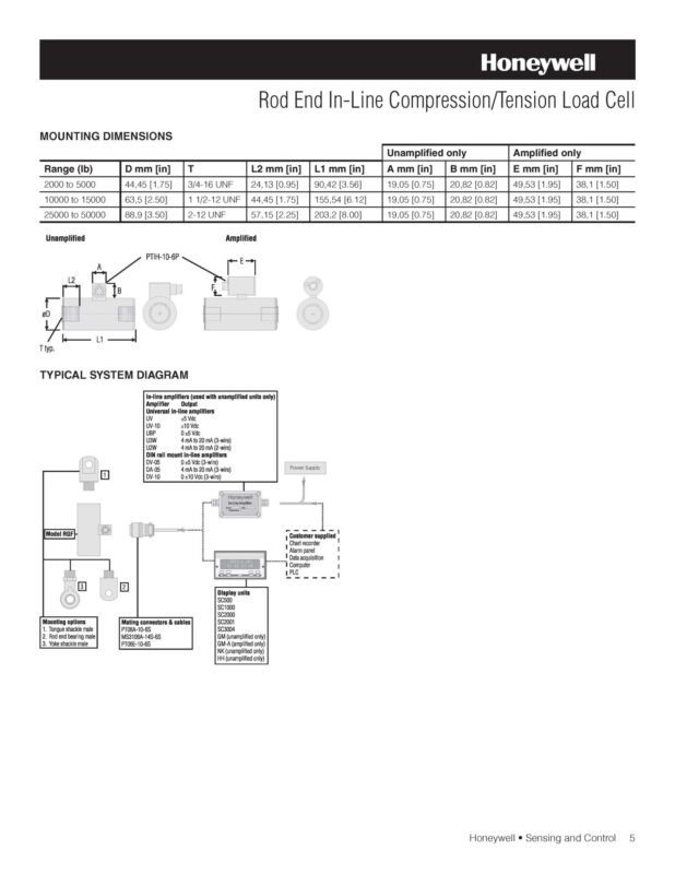 Honeywell Model RGF Rod End In-line Compression/Tension Load Cell