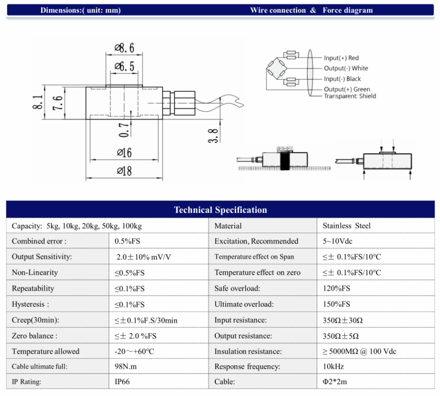 Application: Suitable for force control in production control, vibratory feeding equipment and other electronic weighing or force measuring fields.