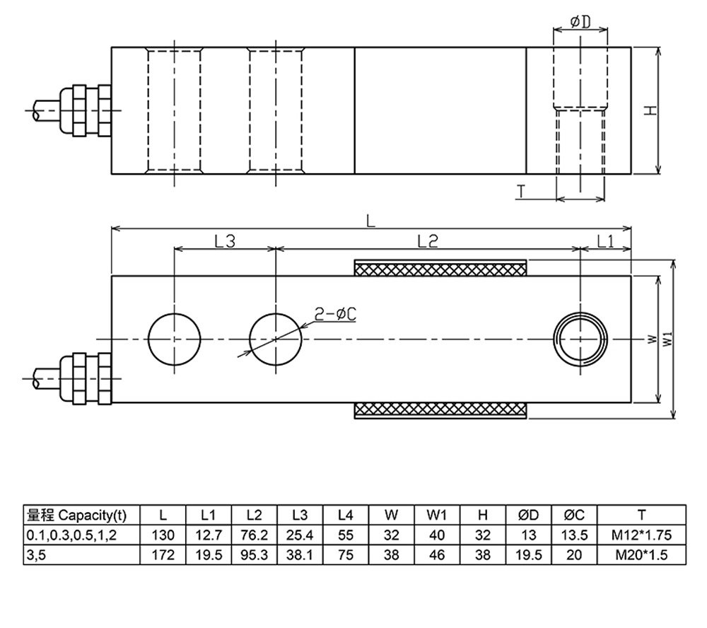 - The SQB kit shear beam load cell, with capacities of 100 kg to 5 t, is made of high-quality alloy steel with a nickel-plated surface, features IP68 protection, and is suitable for hopper and tank weighing, belt scales, livestock scales, and other critical weighing and control applications in the chemical, food, and pharmaceutical industries.