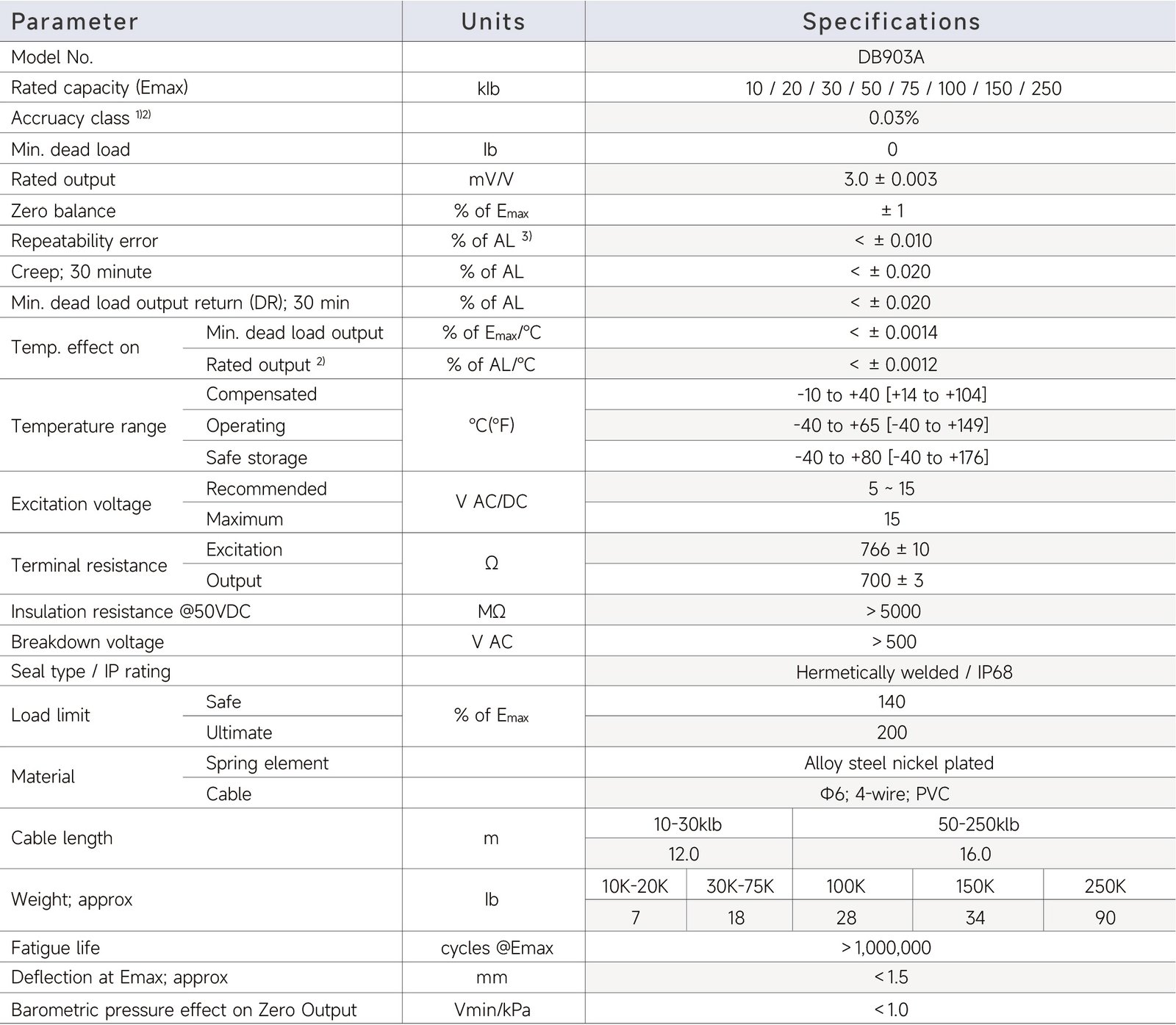 DB903A-10klb, DB903A-20klb, DB903A-30klb, DB903A-50klb, DB903A-75klb, DB903A-100klb, DB903A-150klb, DB903A-250klb