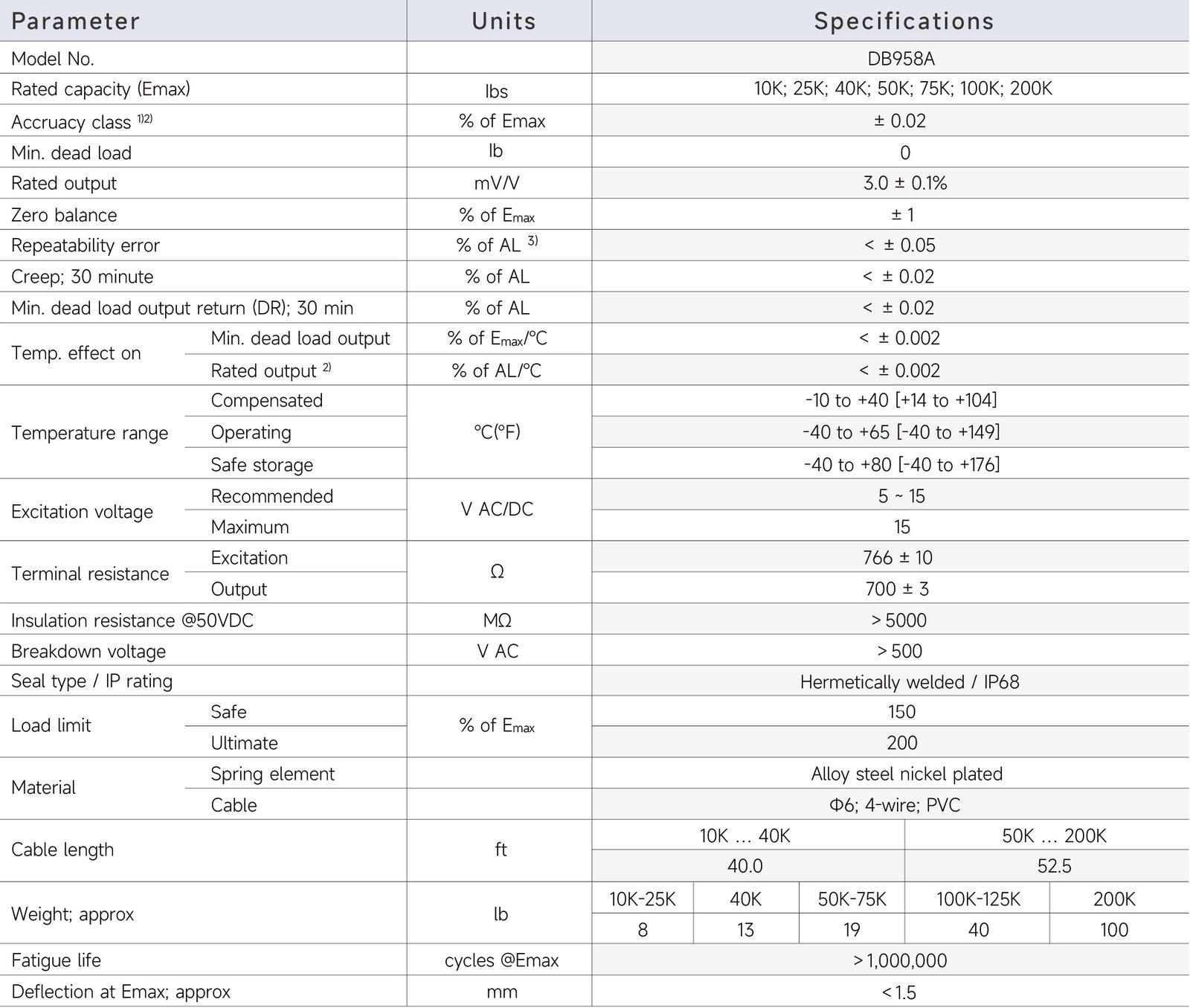 DB958A-10klb, DB958A-25klb, DB958A-40klb, DB958A-50klb, DB958A-75klb, DB958A-100klb, DB958A-200klb,
