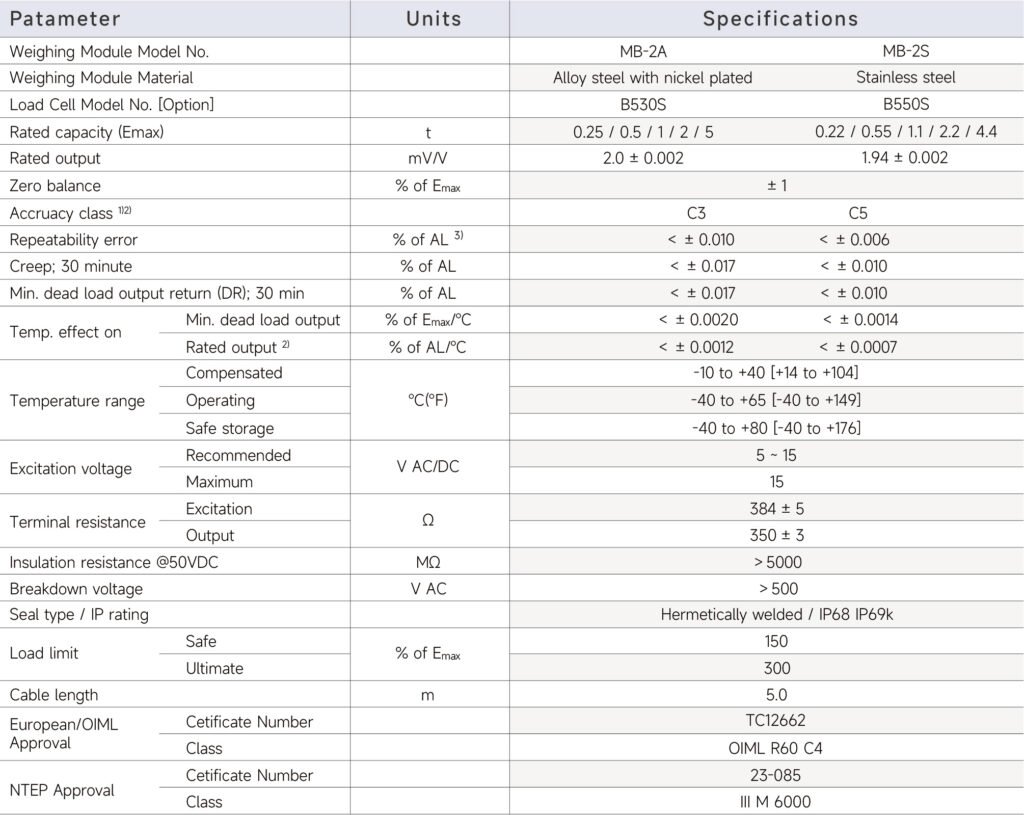 MB-2S-0.22t, MB-2S-0.55t, MB-2S-1.1t, MB-2S-2.2t, MB-2S-4.4t