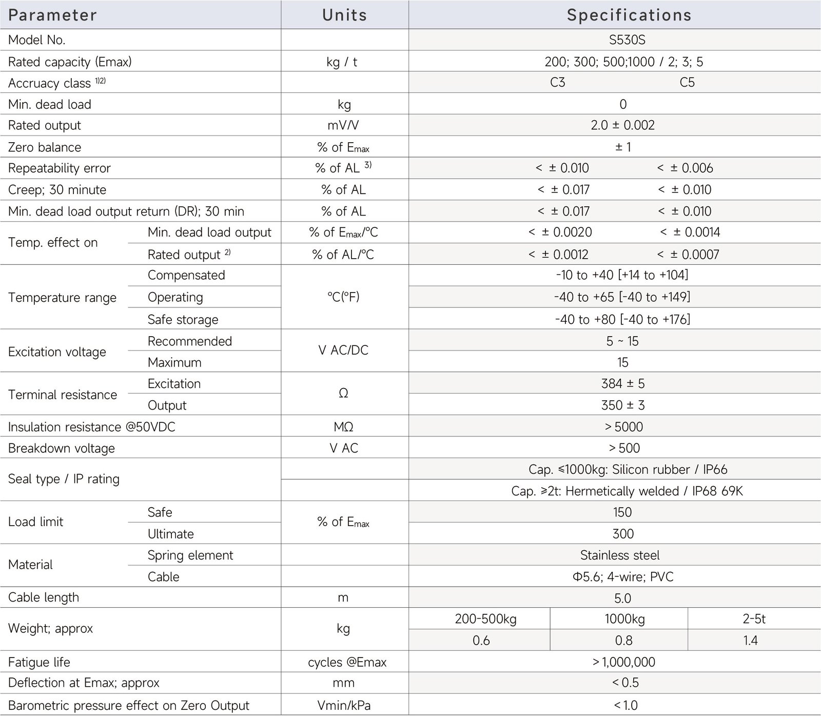 S530-200kg, S530-300kg, S530-500kg, S530-1000kg, S530-2t, S530-3t, S530-5t