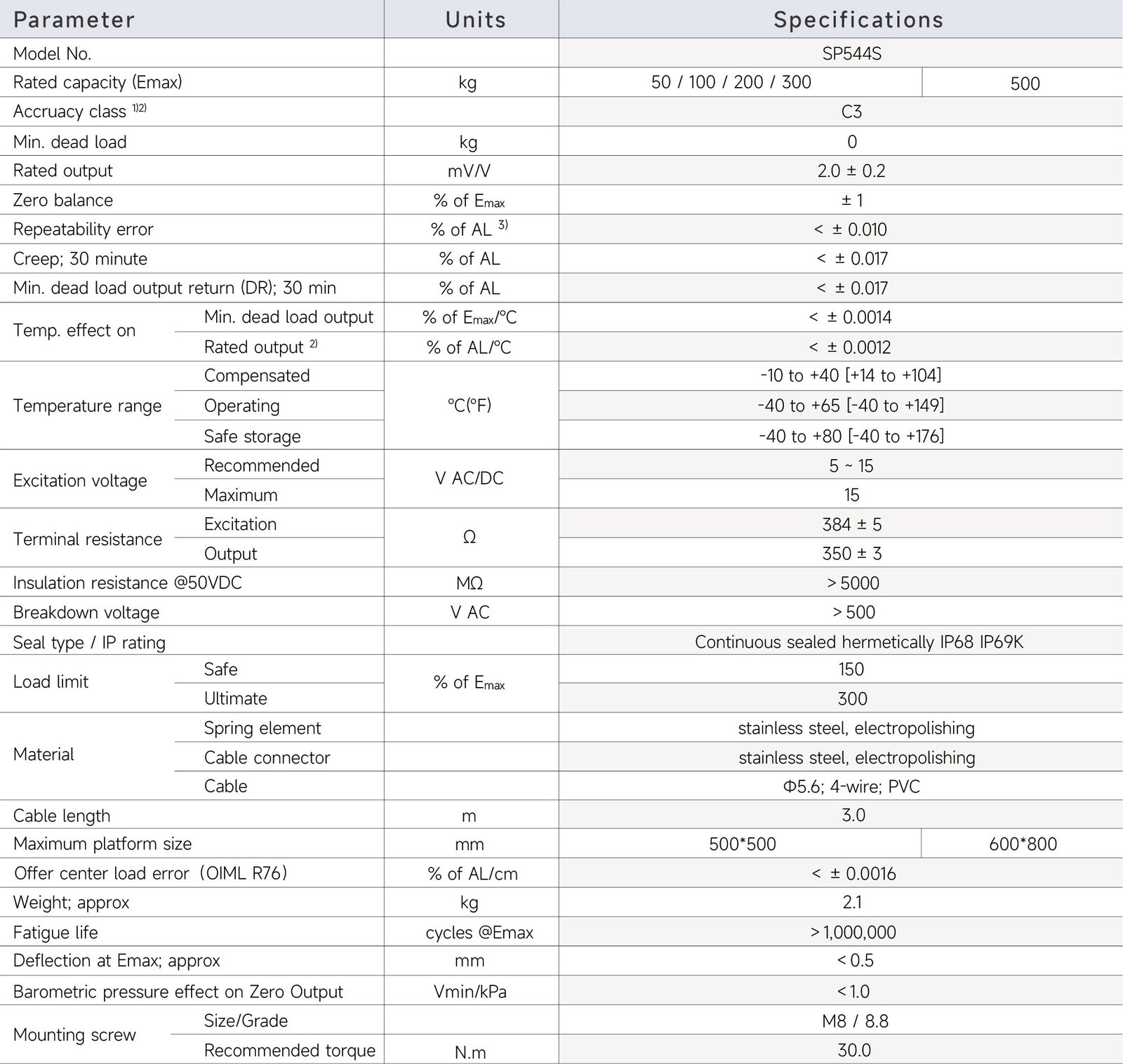SP544S-50kg, SP544S-100kg, SP544S-200kg, SP544S-300kg, SP544S-500kg