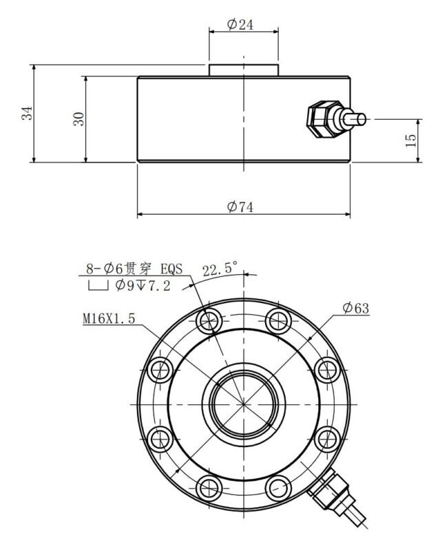 Wheel shaped load cell pancake transducer NF120A is based on foil strain gauge technology with mV signal output. The shear web load cell can measue loads in either tension or compression. The pancake load cell has five measuring ranges, respectively 0-50KG,0-100KG,0-200KG,0-500KG,0-1000KG. The force sensor can be adaptable to various applications.