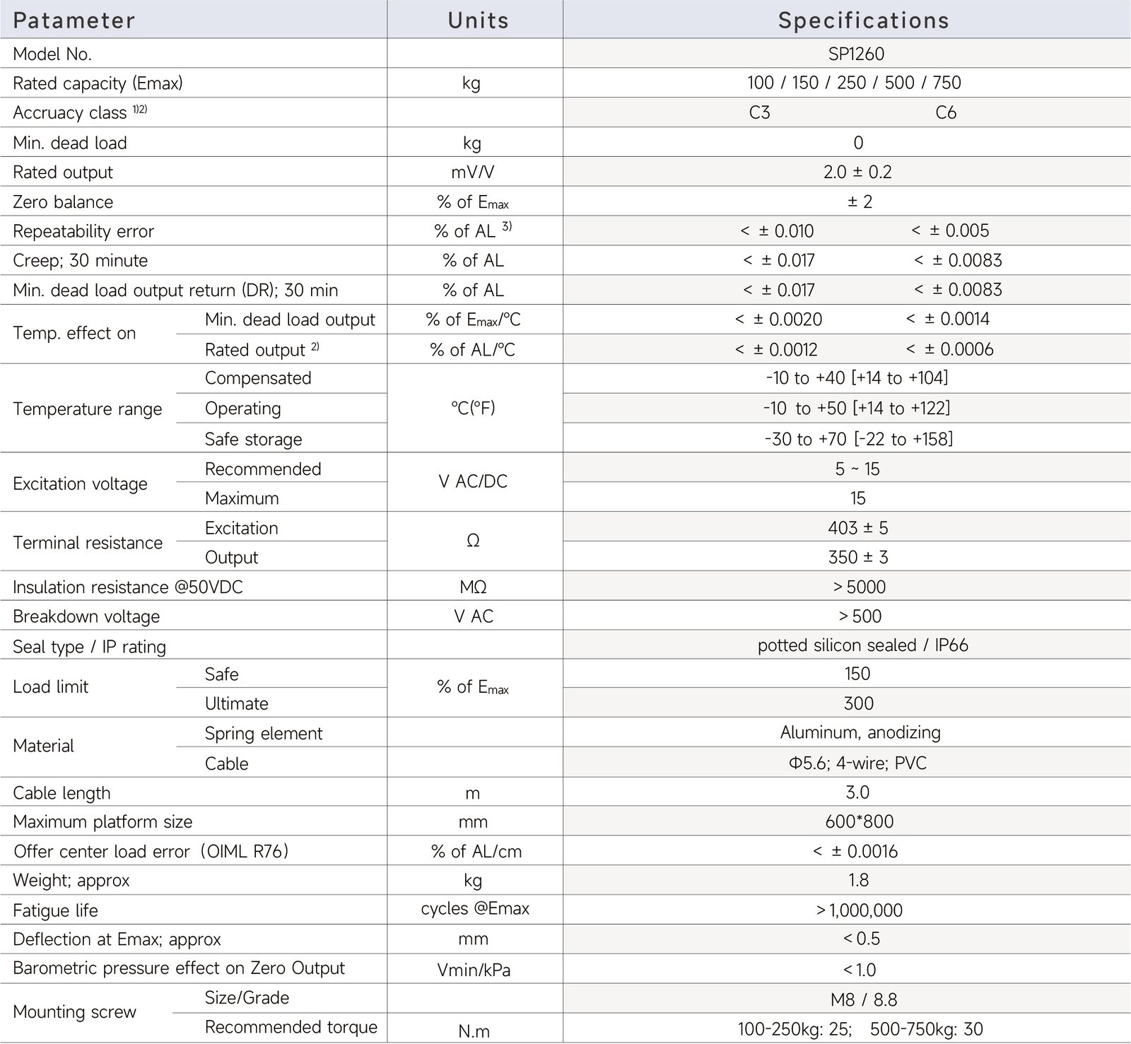 SP1260-100kg, SP1260-150kg, SP1260-250kg, SP1260-500kg, SP1260-750kg