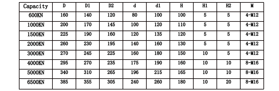 | Standard capacities (Emax) | 600-6500 | KN |