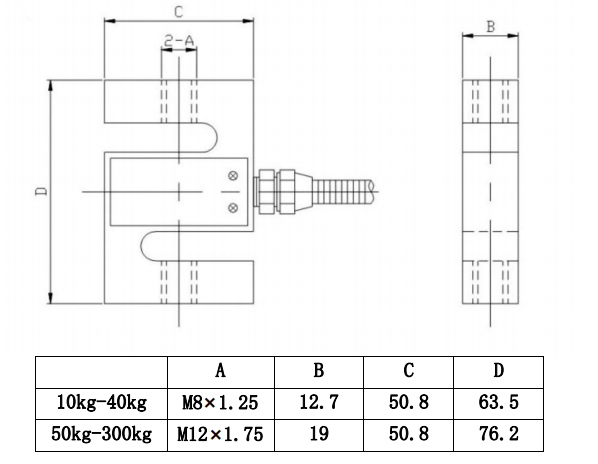 The ZMSAA S type tension load cell offers a wide range of capacities, extending from 10kg to 300kg. Constructed from alloy steel with an electroless nickel-plated surface, it’s a robust and reliable choice. We provide optional amplifer which converts analog sigal into 4-20mA, 0-5V or 0-10V.