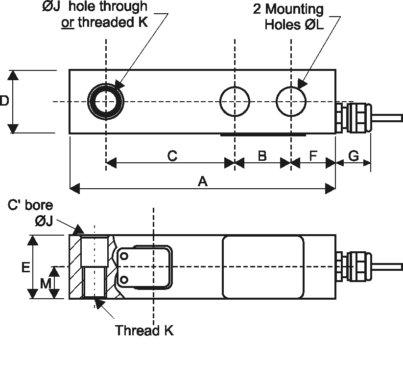 OSBKT Single-Ended Shear Beam Load Cell Outline Drawing