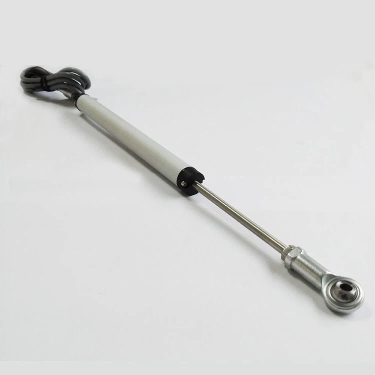 The linear position transducers have a 12 mm cylindrical section case, 4 mm diameter shaft and two fixing ball joints at the ends.