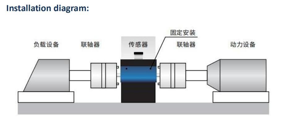 2、The sensor is installed between the motor and the load through the coupling, the shell remains static during the measurement, and the shaft rotates with the motor shaft.