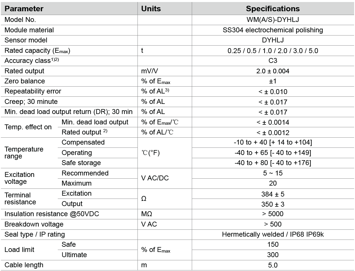 2) The sum of errors due to Temperature Effect on Output comply with the requirements of OIML R60 and NIST +B44