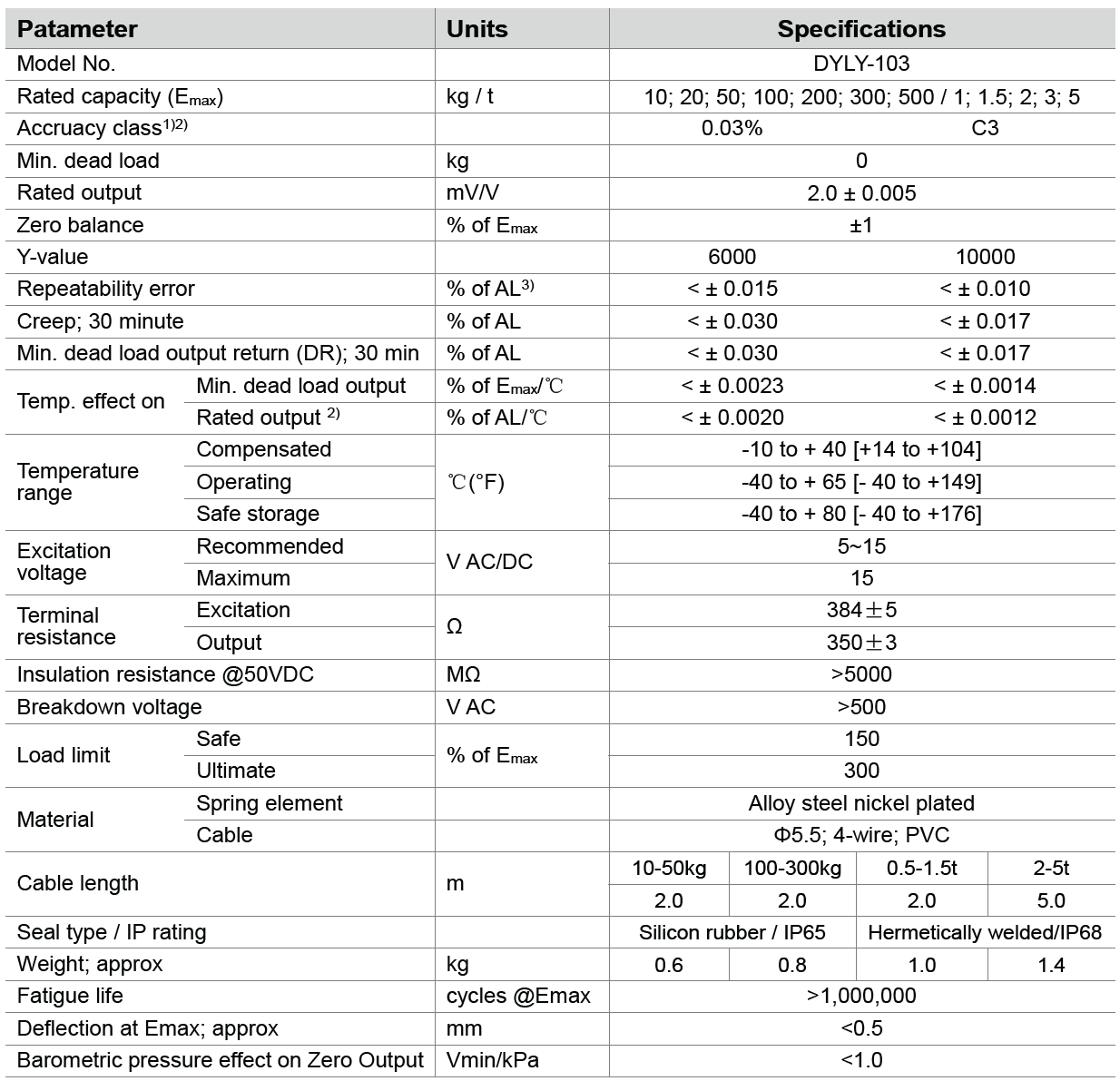 2) The sum of errors due to Temperature Effect on Output comply with the requirements of OIML R60 and NIST HB44