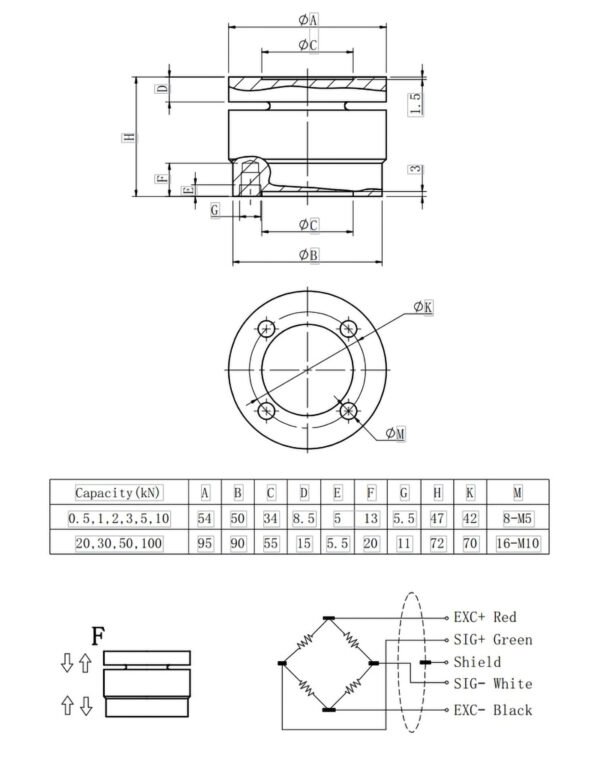 | Capacity | kN | 0.5, 1, 2, 3, 5, 10, 20, 50, 100 |