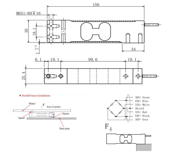 Dimension:L=150mm,W=25.4mm,H=39mm