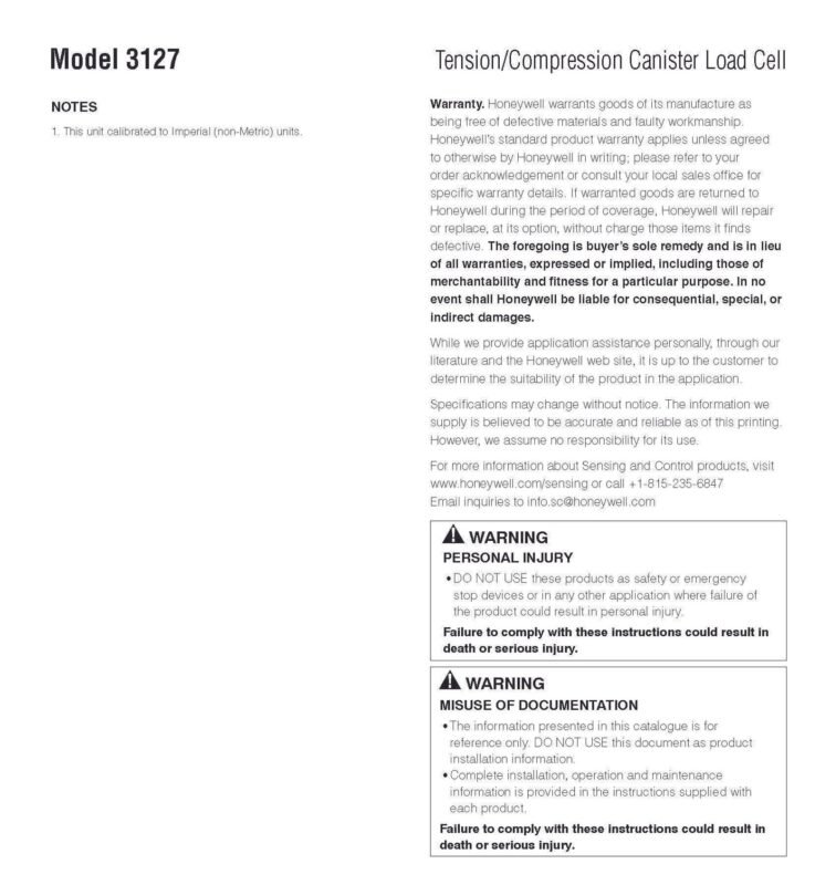 Honeywell / Model 3027 / Tension/Compression Canister Load Cell