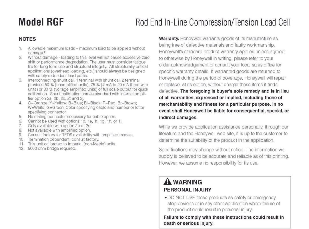 Honeywell Model RGF Rod End In-line Compression/Tension Load Cell