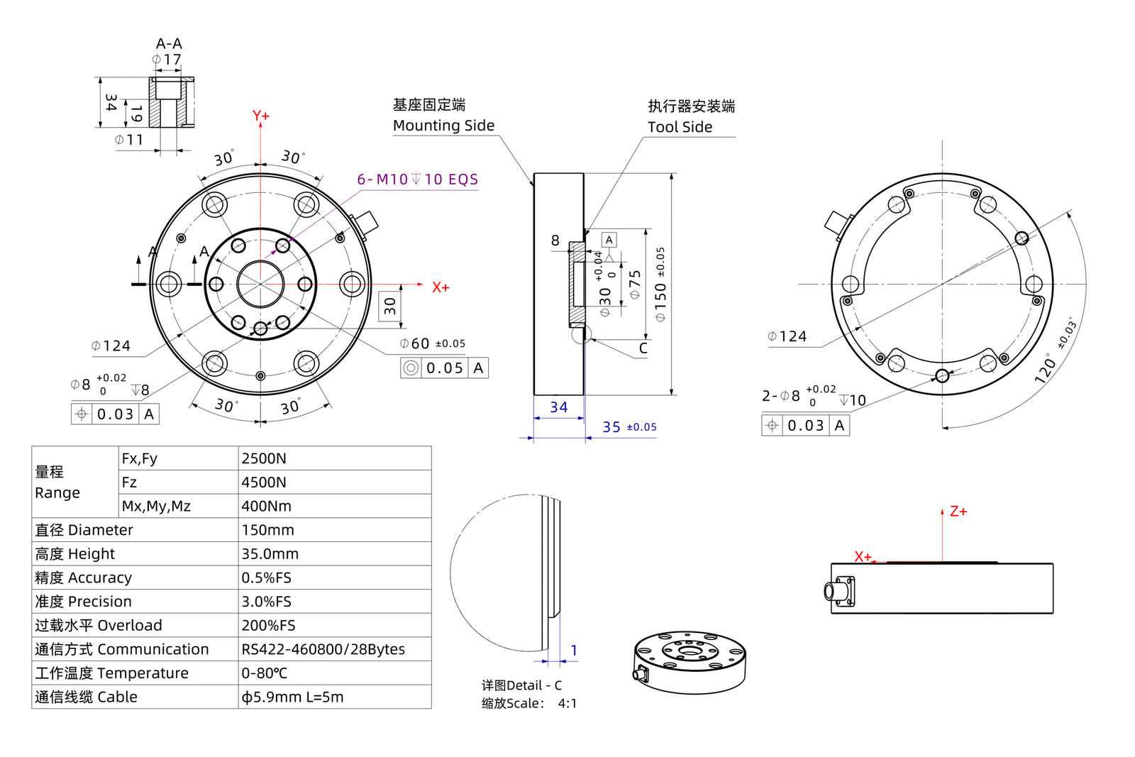 The KWR150 series is a remarkable six-axis force sensor that is embedded with high-flexural resistance and has a broad measuring range. With its exceptional bending resistance, it has a high overload tolerance. The body of the sensor is made using high-strength alloy steel, allowing it to meet high rigidity and strength requirements. This product has a built-in high-accuracy signal acquisition system, which has exceptional algorithmic decoupling capabilities. It can instantly gather load and decouple data, and produce high-precision and high-accuracy measurement values.
