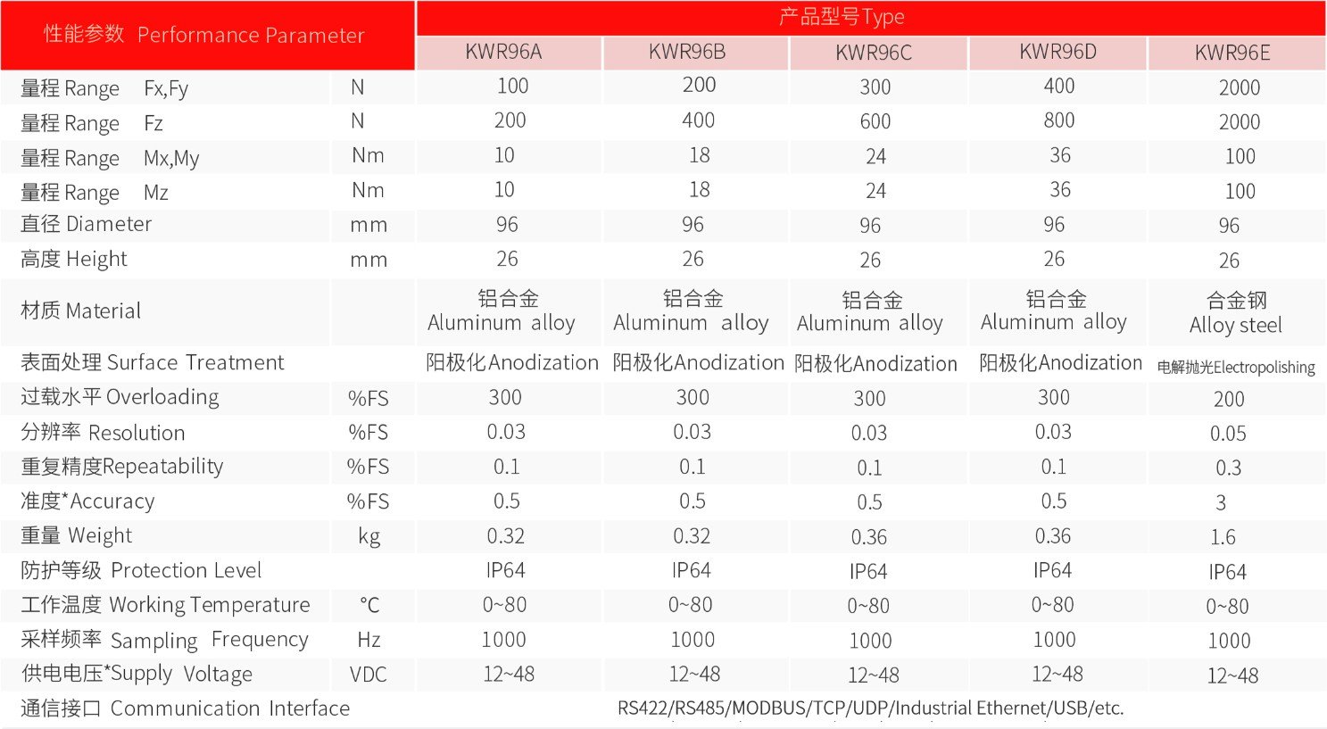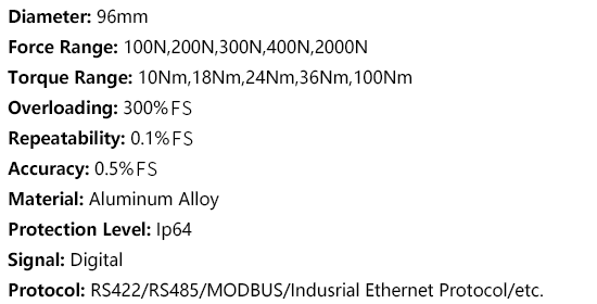 KWR96 series sensor is an industrial lightweight force torque sensor that measures on 6 axes.,features in high strength and large capacity from 100N to 2000N . this torque sensor with digital output and Light weight also contributes to reducing the load on the robot.