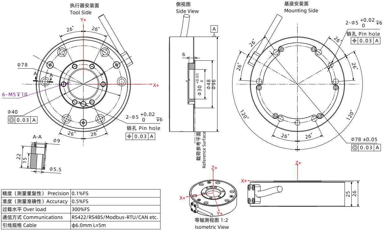 - High-precision six-axis torque sensor with large torque range .