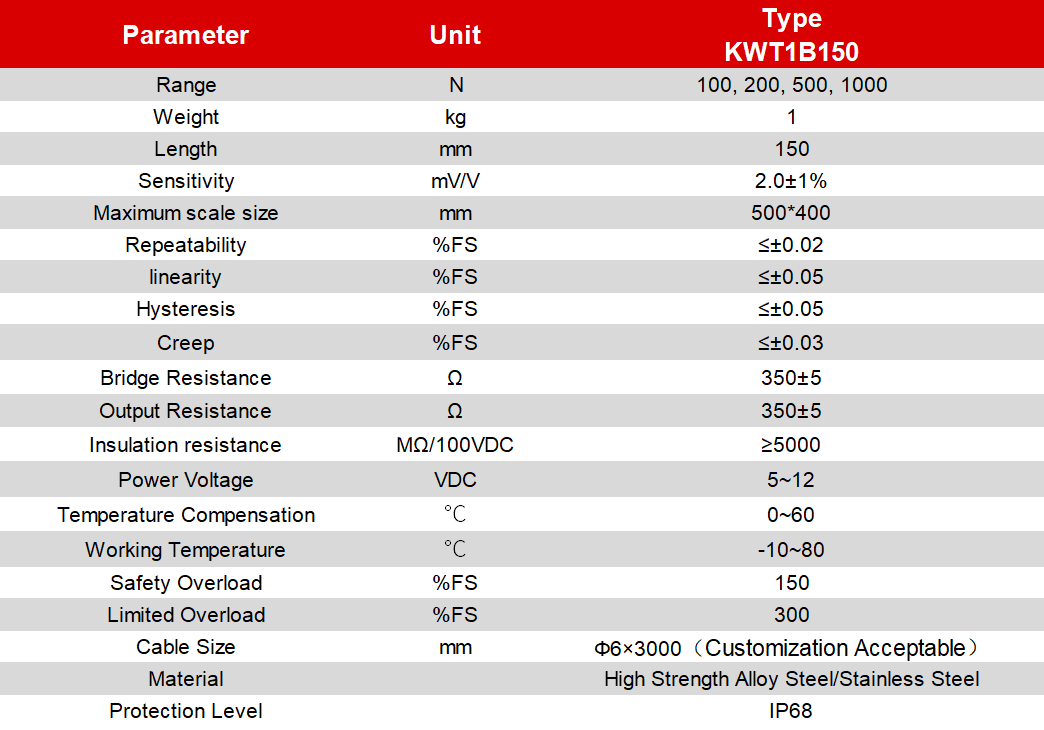 - KWT1B150 multi-purpose signle weighing sensor is made of stainless steel and sealed by laser welding. This protects the weighing sensor from moisture, thereby achieving better stability and measurement performance.