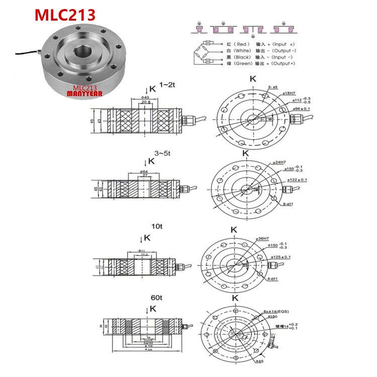 Model: MLC213 Category: Button Load Cell Range: 1t, 2t, 3t, 5t, 10t, 20t, 30t, 60t Dimension: 226 × 45 mm / 226 × 66 mm Material: Alloy Steel / Stainless Steel Features: Hopper scale weight sensor, round force sensor, compression force sensor, button load cell |
