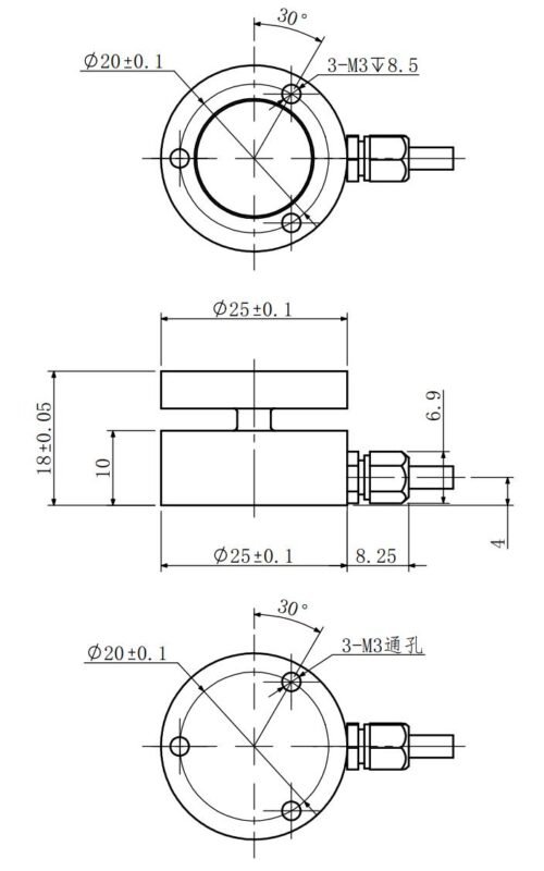 Micro flatbed pressure load cell NF127 is made of stainless steel. The subminiature load cell has six measuring ranges, respectively 0-10KG,0-20KG,0-50KG,0-100KG,0-200KG,0-500KG. The subminiature flange force sensor can be used in many applications.