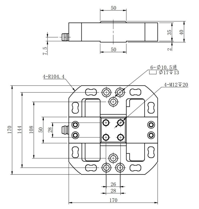 Strain type three-axis load cell 1-5t 704D consists of an elastic element, a resistance strain gauge and a Wheatstone bridge circuit. The resistance strain gauge converts the strain variable proportional to the weight of the object into the resistance change, and then converts the resistance change into the voltage or current output through the Wheatstone bridge circuit. The voltage or current output value can be measured by the display instrument to complete the measurement task.