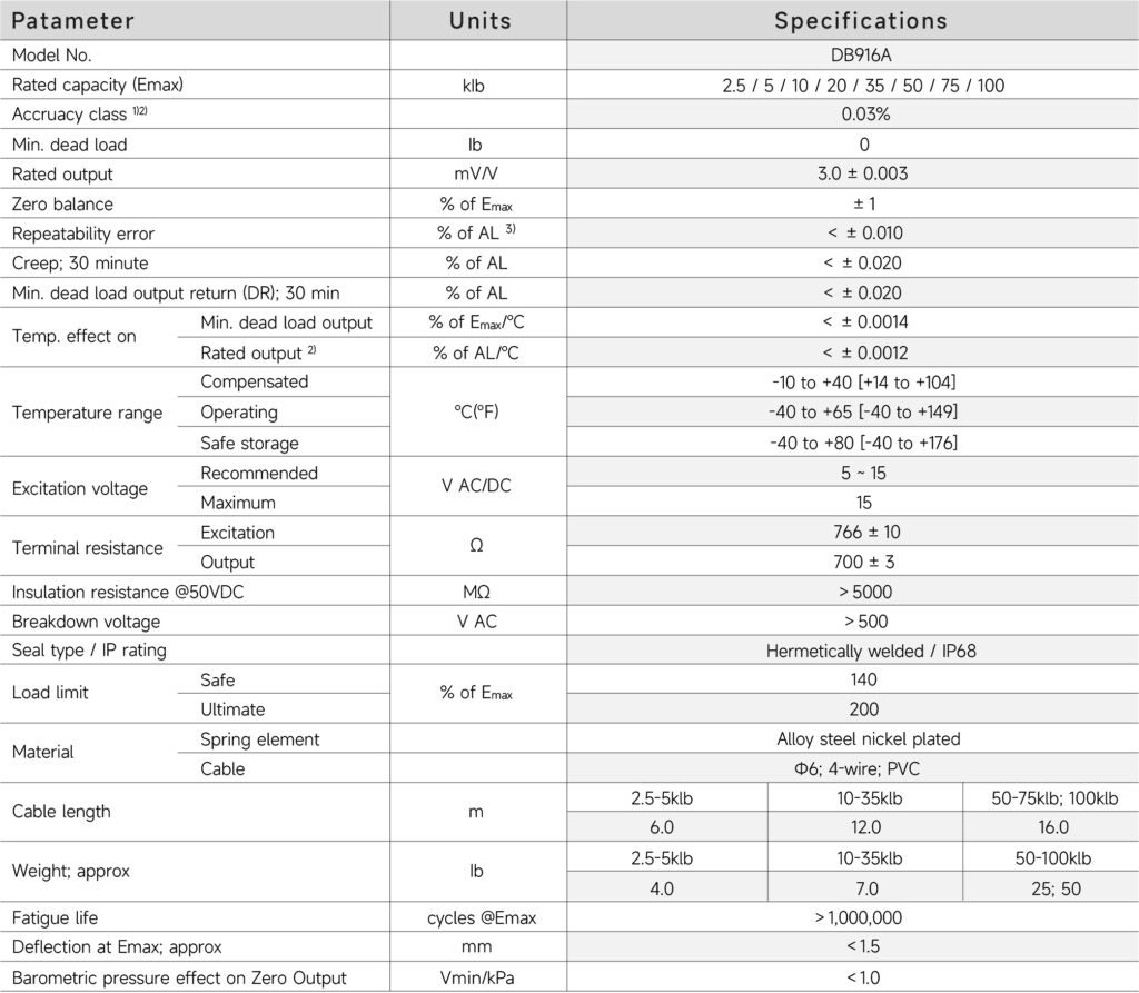 DB916A-2.5klb, DB916A-5klb, DB916A-10klb, DB916A-20klb, DB916A-35klb, DB916A-50klb, DB916A-75klb, DB916A-100klb
