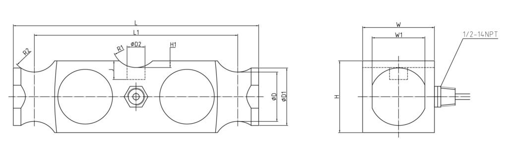 | Capacity(inches) | L | L1 | W | W1 | H | H1 | D | D1 | D2 | J | R1 | R2 |