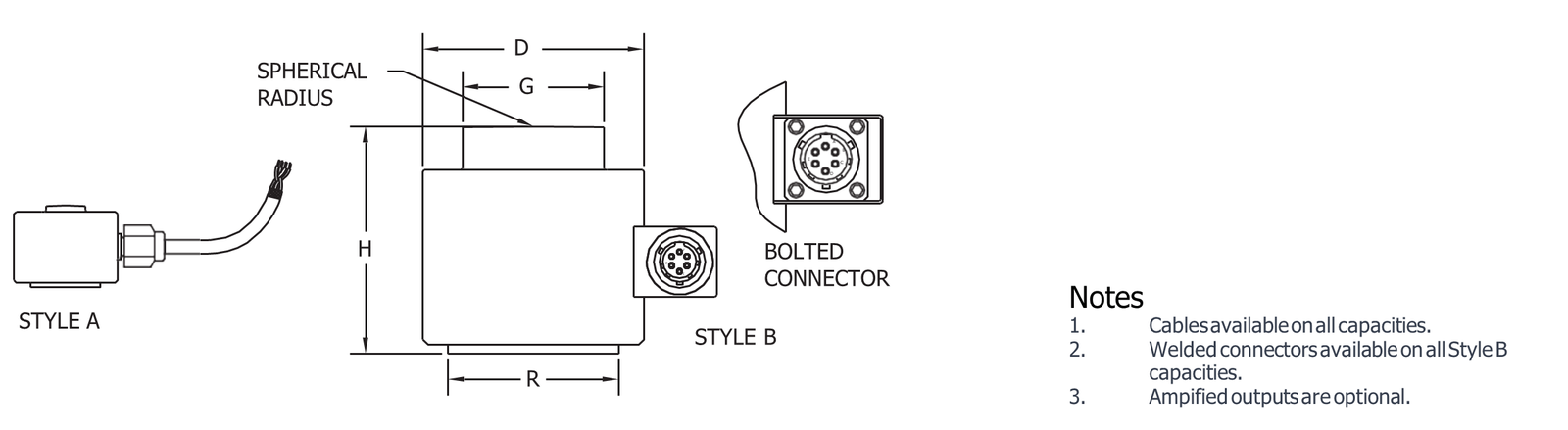 | CAPACITY (LBS) | HEIGHT H | DIAMETER OVERALL D | DIAMETER BUTTON G | DIAMETER BASE R | STYLE | CONNECTOR STYLE |