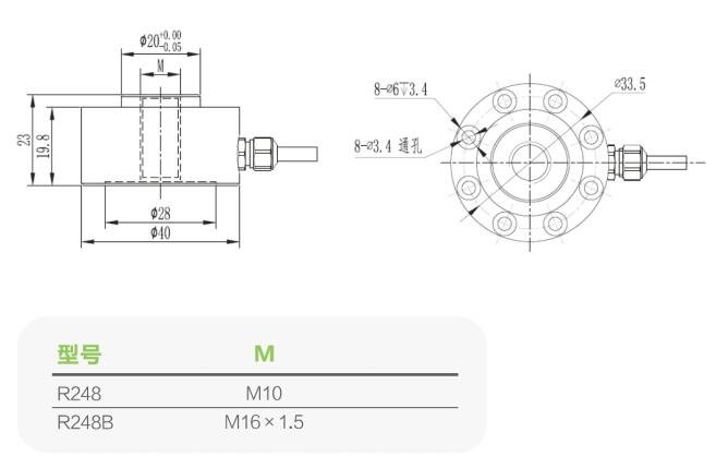 Sensitivity Drift Temperature Coefficient 0.05%F.S./10℃  Cable size φ3×4000mm