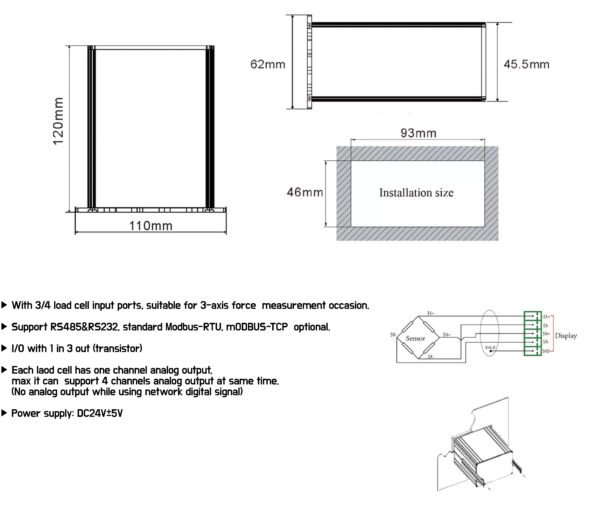 | Excitation Voltage | VDC | 5VDC (Max 4 pcs of 350Ω load cells in parallel) |