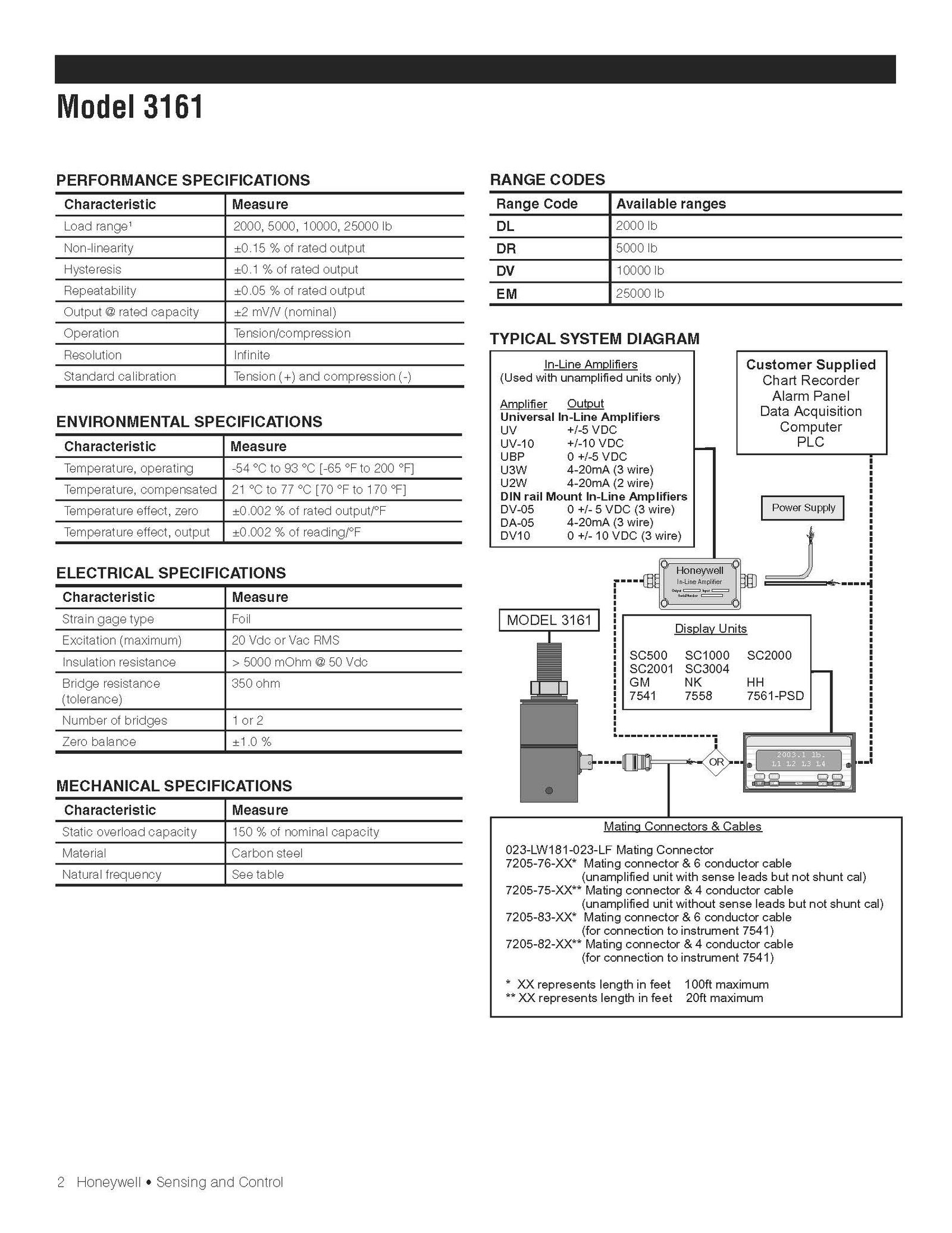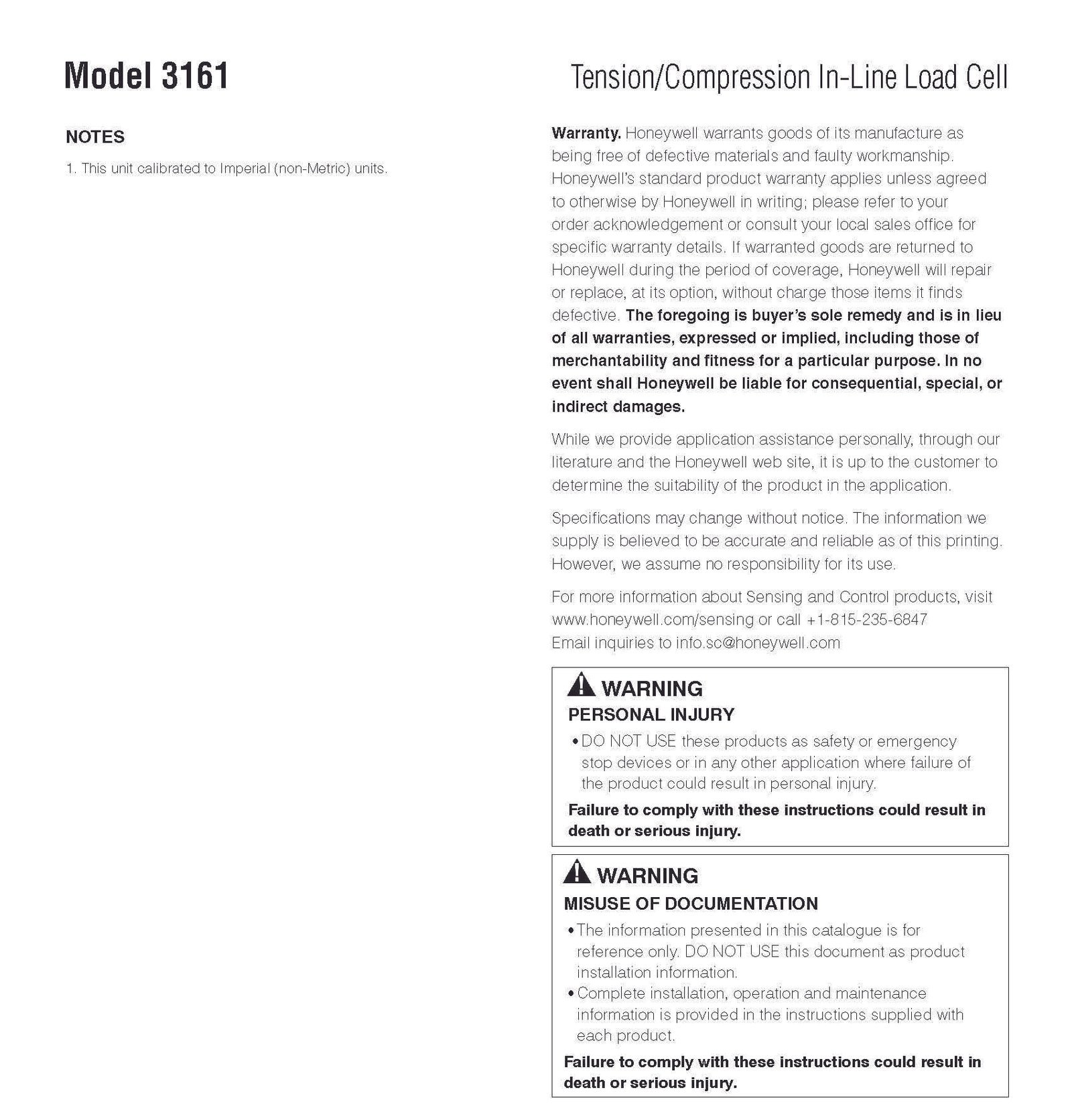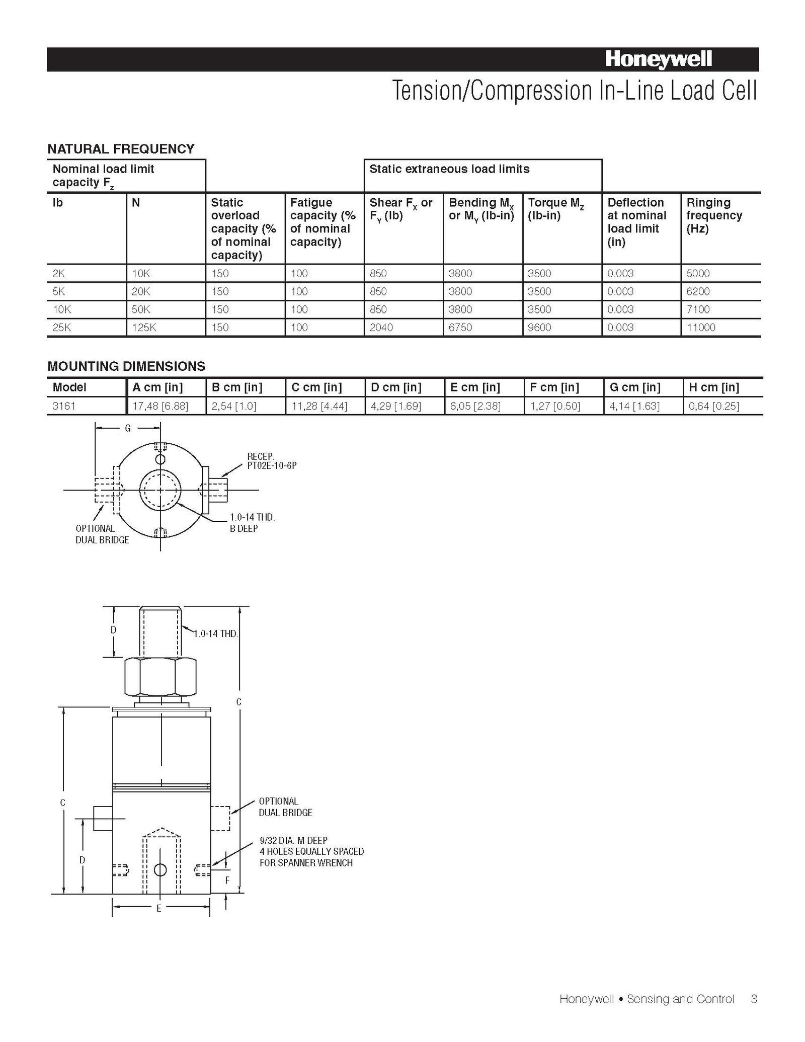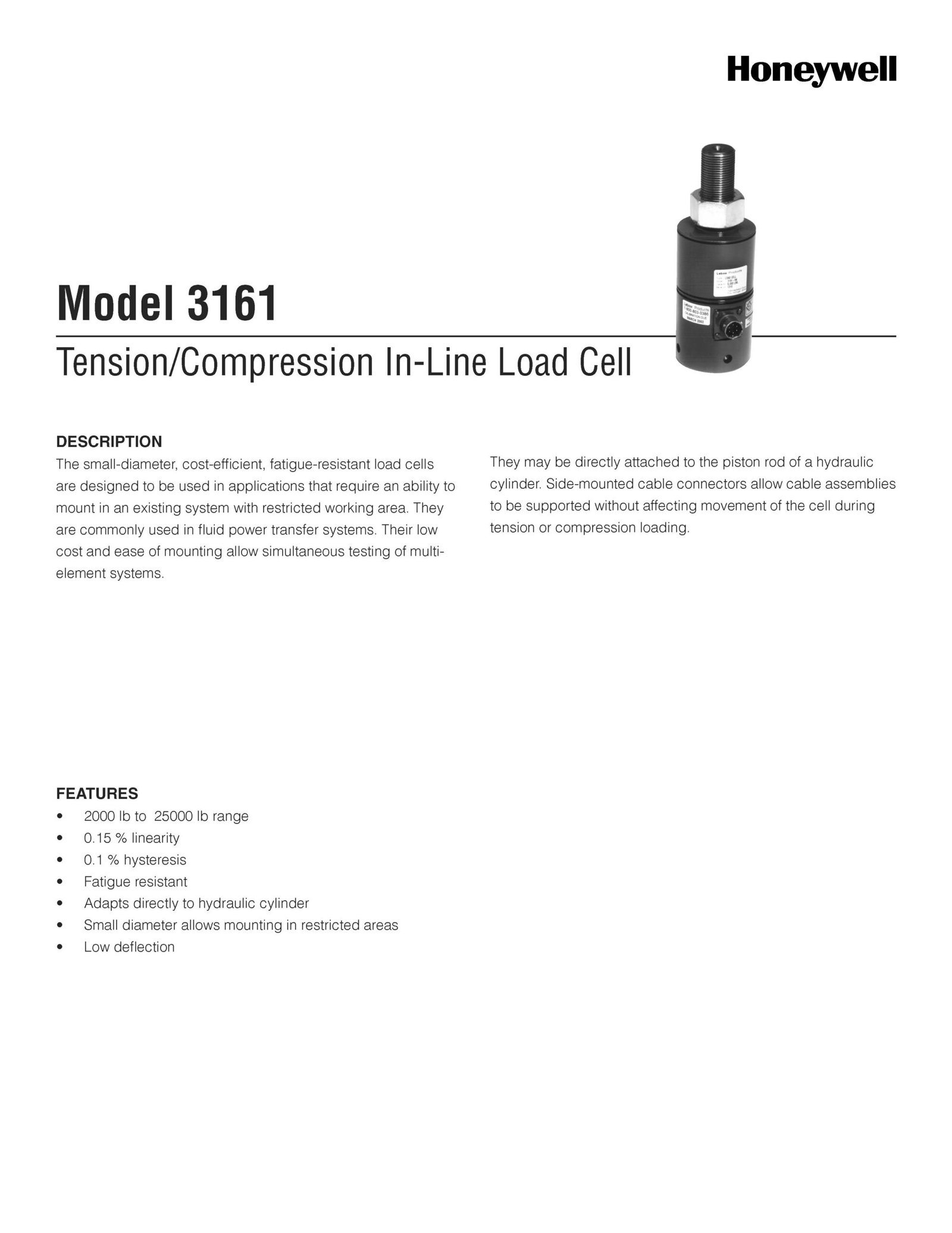 Honeywell Model 3161 Tension/Compression In-Line Load Cell