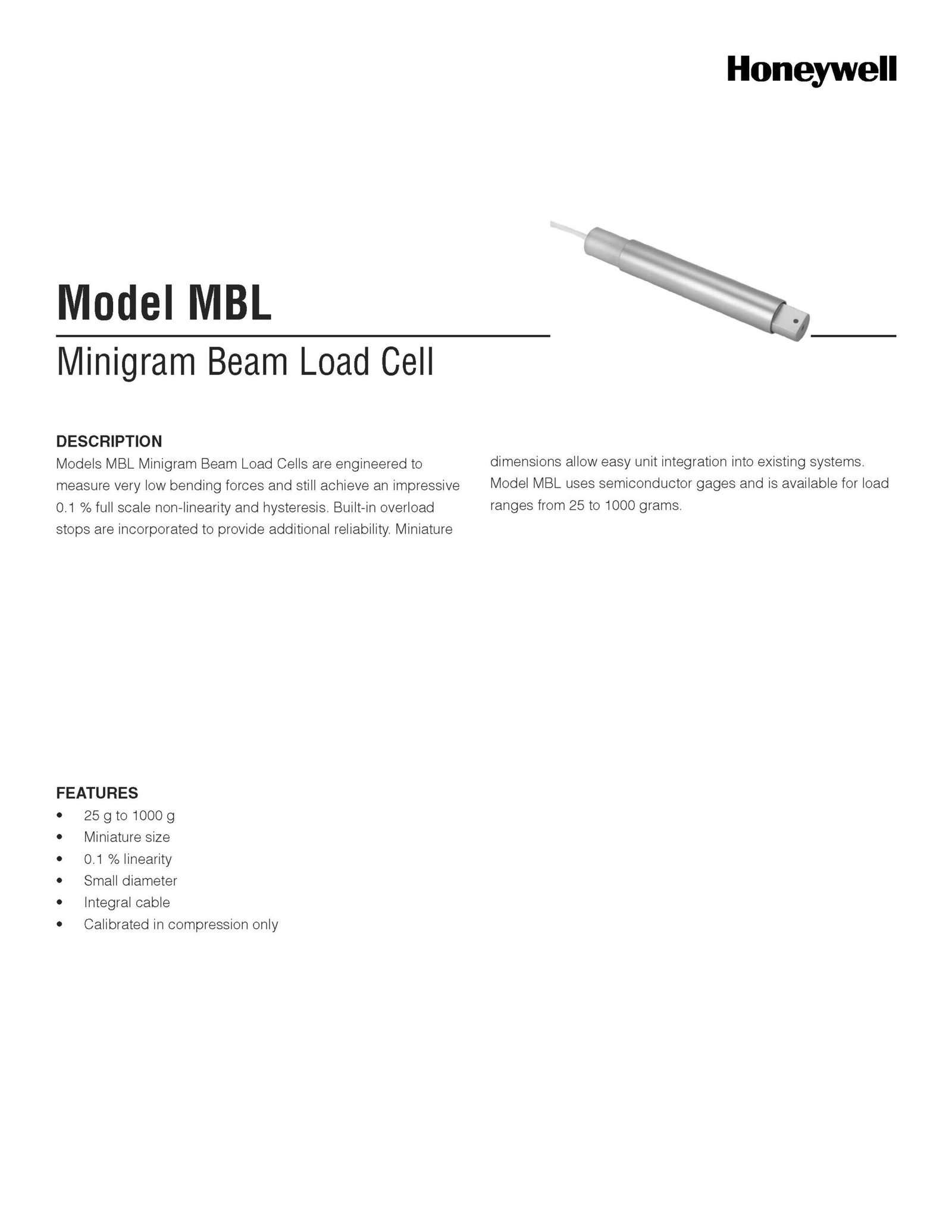 Honeywell Model MBL Minigram Beam Load Cell