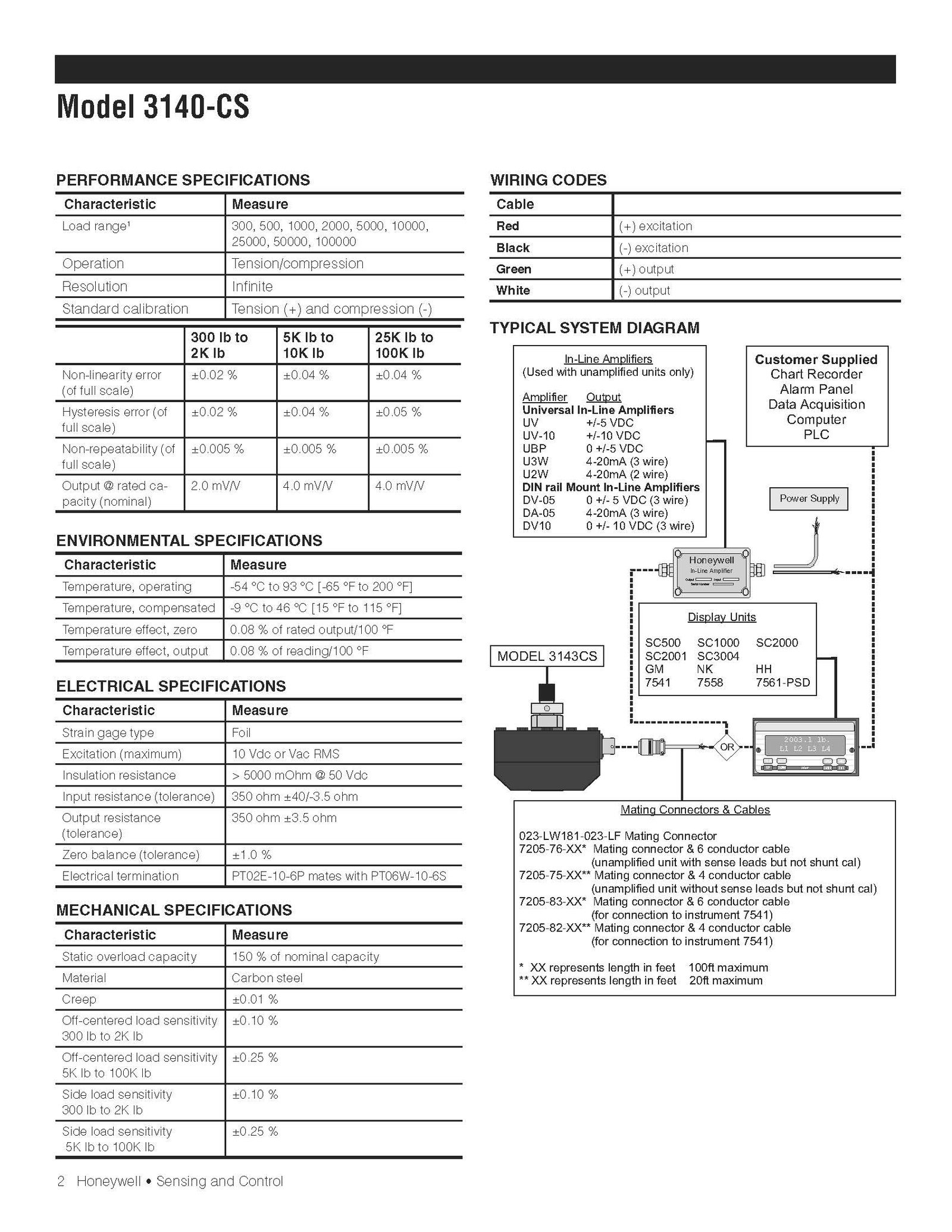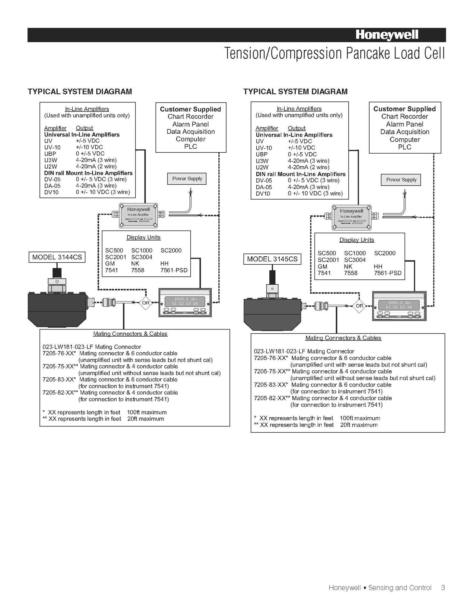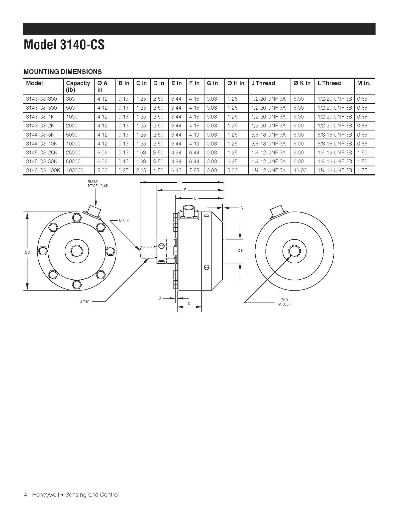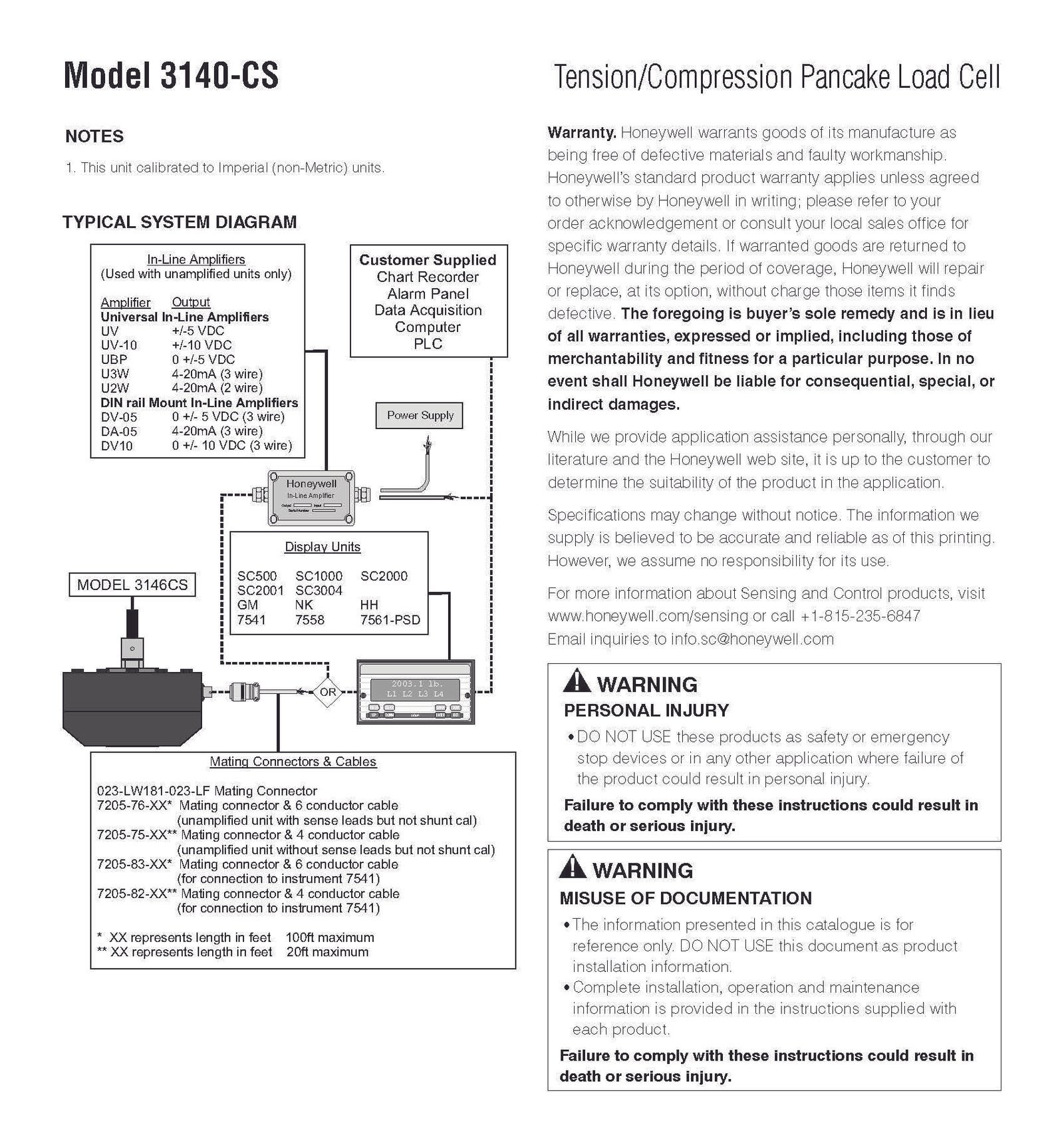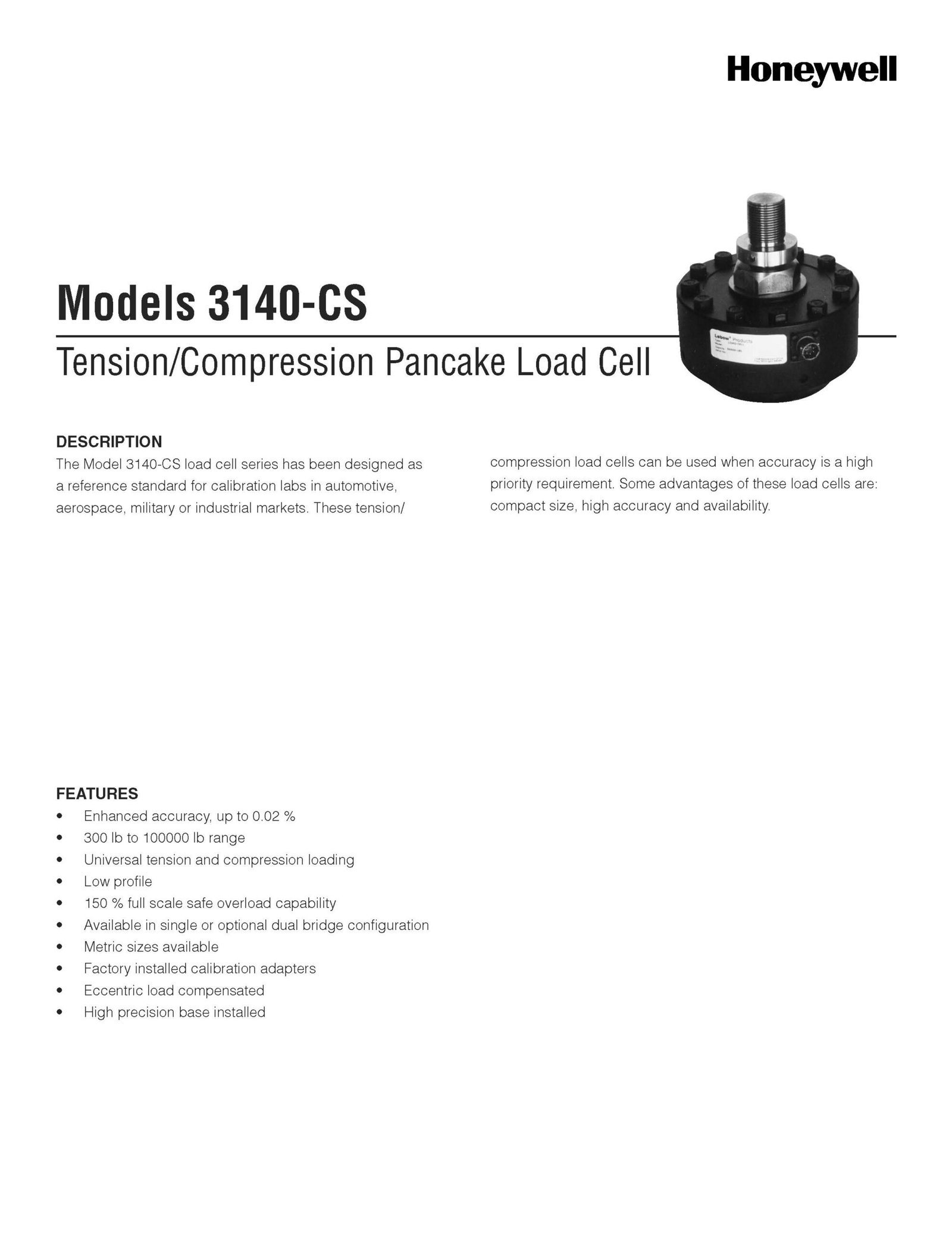 Honeywell / Models 3140-CS / Tension/Compression Pancake Load Cell