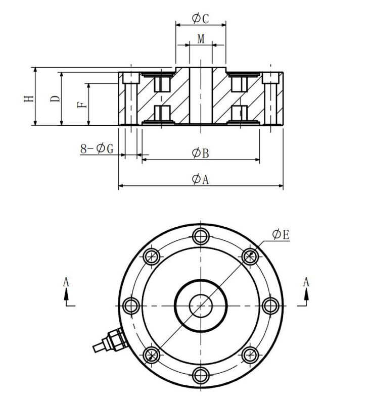 Micro pressure transducer pancake load cell NF120B has a central threaded hole for measuring loads in either tension or compression.The wheel shaped transducer are available in a wide capacity range from 100kg to 30t. The spoke pressure sensor has high endurance and high fatigue life.