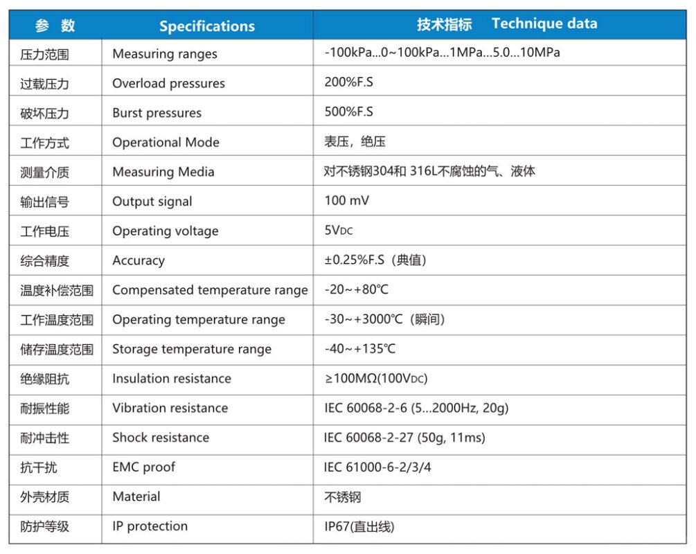 The ZMYL series of pressure sensors are cost-effective products designed for high volume, low cost industrial and civil pressure measurement field.